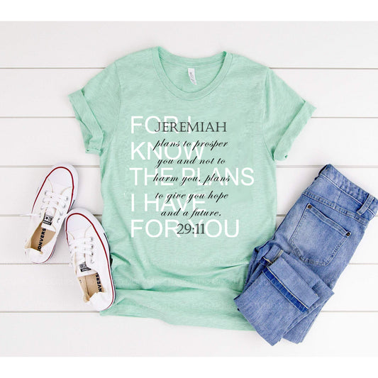 For I Know The Plans I Have For You - Mint Short Sleeve TeeRegular price $ 12.00 USDRegular priceUnit price per$ 25.00 USDSale price $ 12.00 USDSale