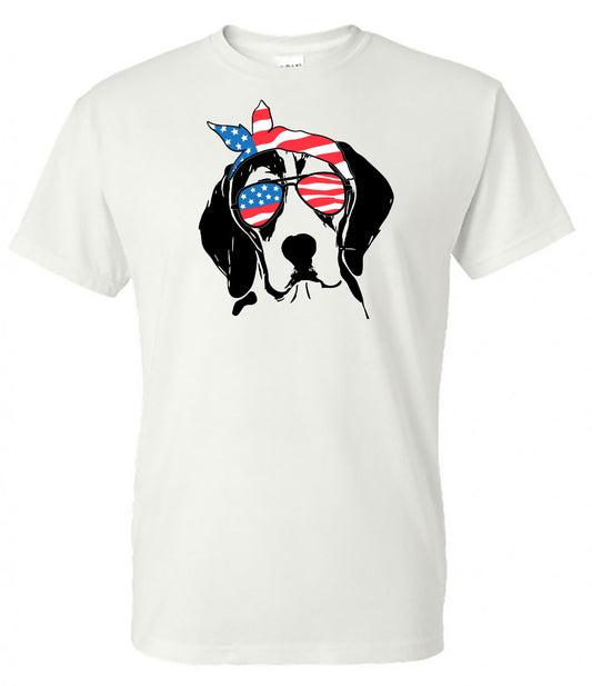 Beagle with Flag Bandana & Glasses Tee