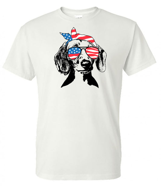 Dachshund with Flag Bandana & Glasses Tee