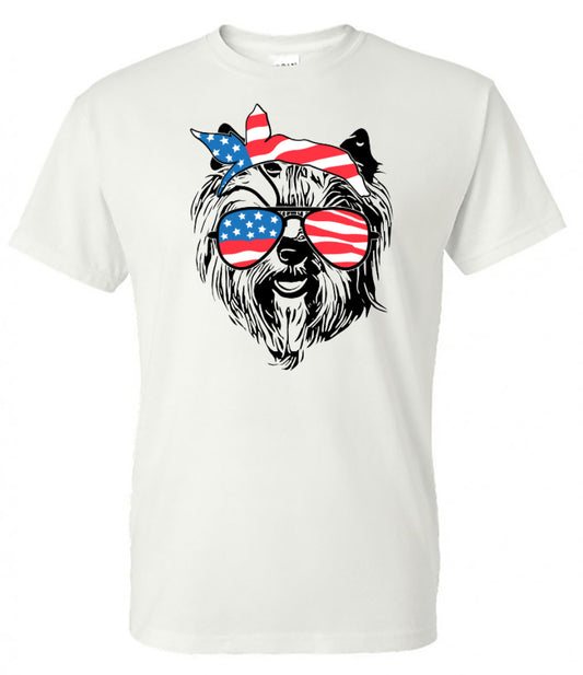 Yorkie with Flag Bandana & Glasses Tee