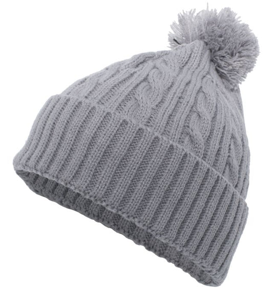 Chaos - CABLE KNIT POM-POM BEANIE with Chaos Logo - Silver (643K)