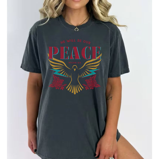He Will Be Our Peace Distressed Print - White Comfort Color Short Sleeves Tee