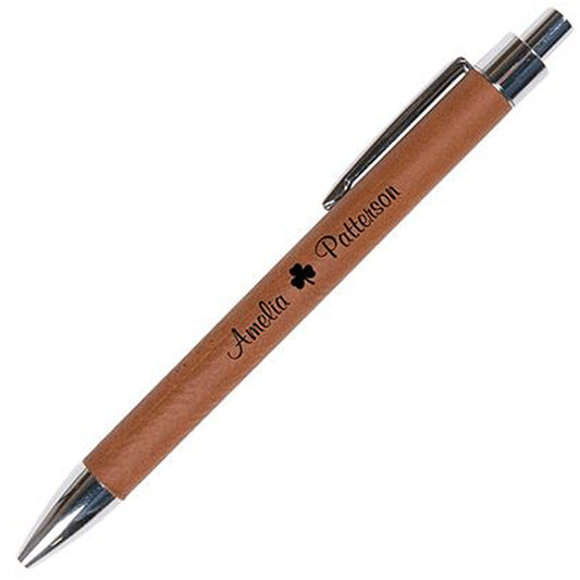 TAN FAUX LEATHER PEN - ENGRAVABLE