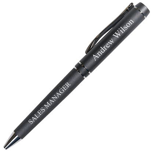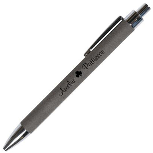 GREY FAUX LEATHER PEN - ENGRAVABLE