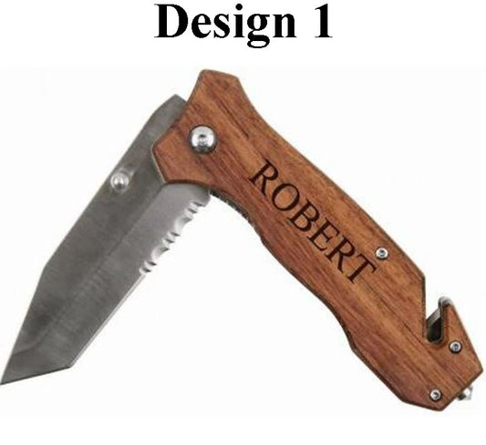 WOOD POCKET KNIFE W/ CLIP - ENGRAVABLE