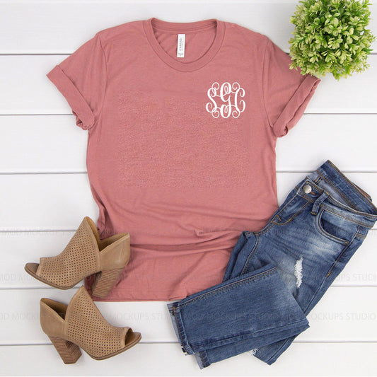 Mauve Monogrammed (Left Chest) Short Sleeve Tee
