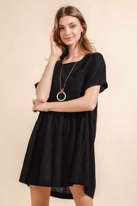 In the Sunlight -Striped Lapel Shirt Dress With Pocket