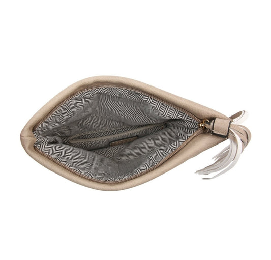Austin Flapover Tassel Crossbody/Clutch- Cheetah Light Grey