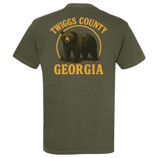 Twiggs County - Bear with Orange Circle - Comfort Color Short Sleeves - Sage (1717)