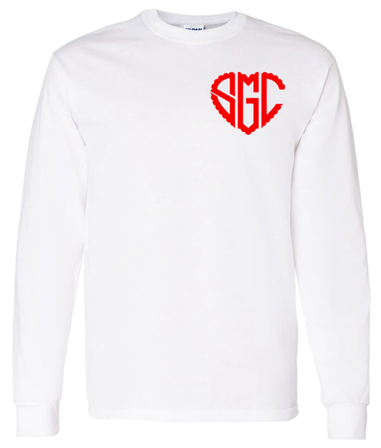 Heart Scalloped Monogram (Left Chest) - White Tee