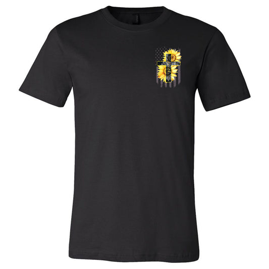 Faith Sunflowers Cross Flag - Black Short Sleeve Tee