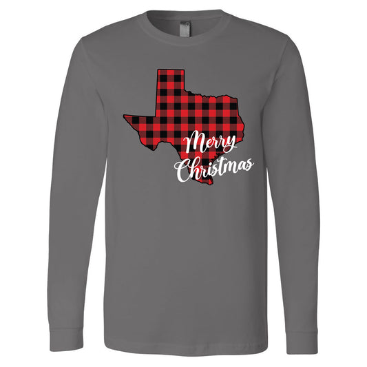 State Merry Christmas Buffalo Plaid - Asphalt Long Sleeves