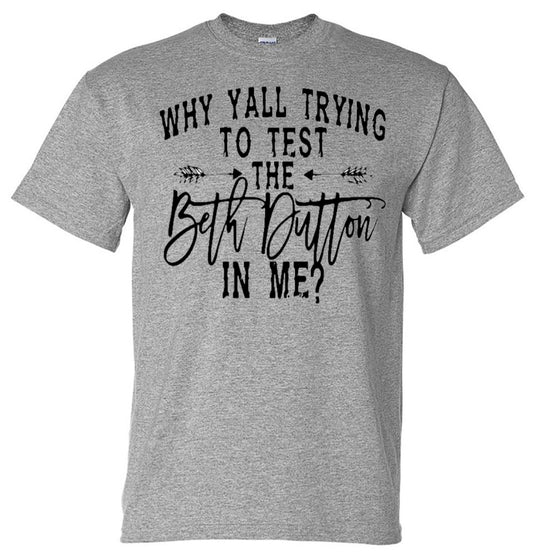 Yellowstone - Why yall trying to test the beth dutton in me - Short Sleeve tee