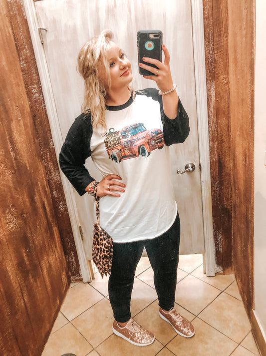 Fall Distressed Truck with Leopard Pumpkin - Black/White RaglanRegular price $ 27.00 USDRegular priceUnit price per-