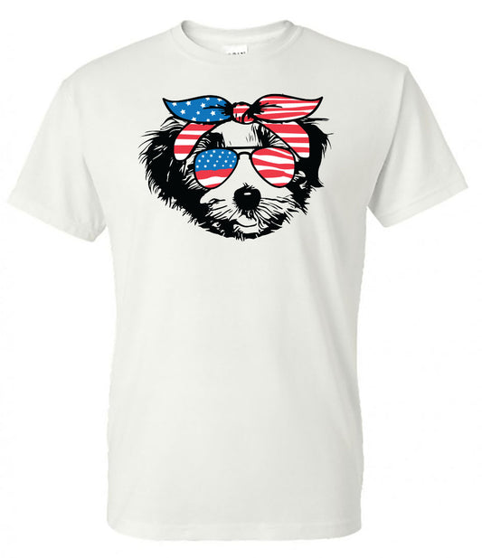 Red, White and Blue Monogram Tie Dye T-Shirt - White Short-Sleeve Tee