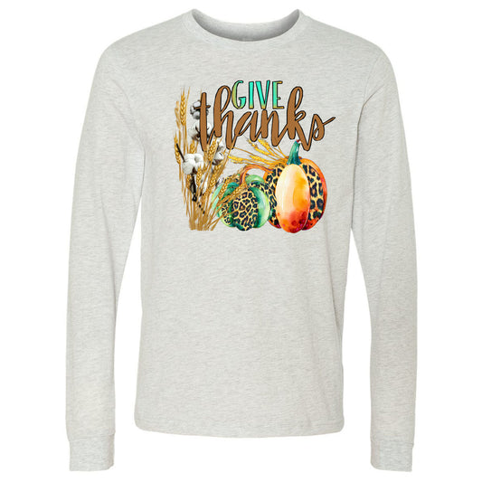 Give Thanks Wheat Cotton Pumpkins - Ash Tee