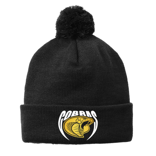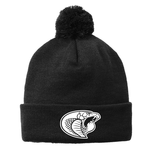 •Twiggs County - Cobras Pointed Cobra Head (White/Gold) - Solid Pom Pom Beanie (STC37)