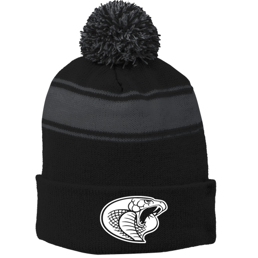 •Twiggs County - Cobra Head (White) - Stripe Pom Pom Beanie (STC28)