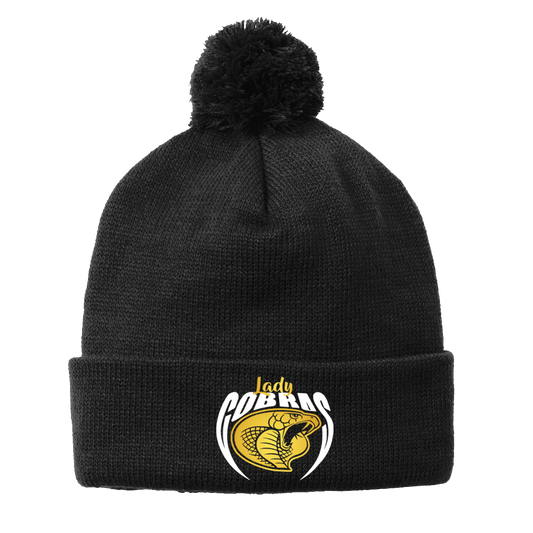 •Twiggs County - Lady Cobras Pointed Cobra Head (White/Gold) - Solid Pom Pom Beanie (STC37)