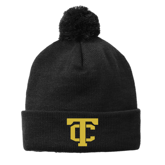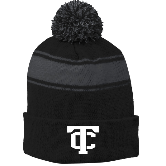 •Twiggs County - TC (Black) - Stripe Pom Pom Beanie (STC28)