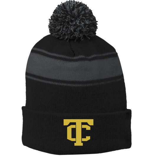 •Twiggs County - TC (Gold) - Stripe Pom Pom Beanie (STC28)
