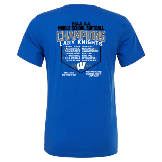 Windsor - GIAA AA Middle School Softball Champions 2023 - Royal (Tee/DriFit/Hoodie/Sweatshirt)