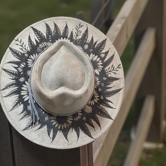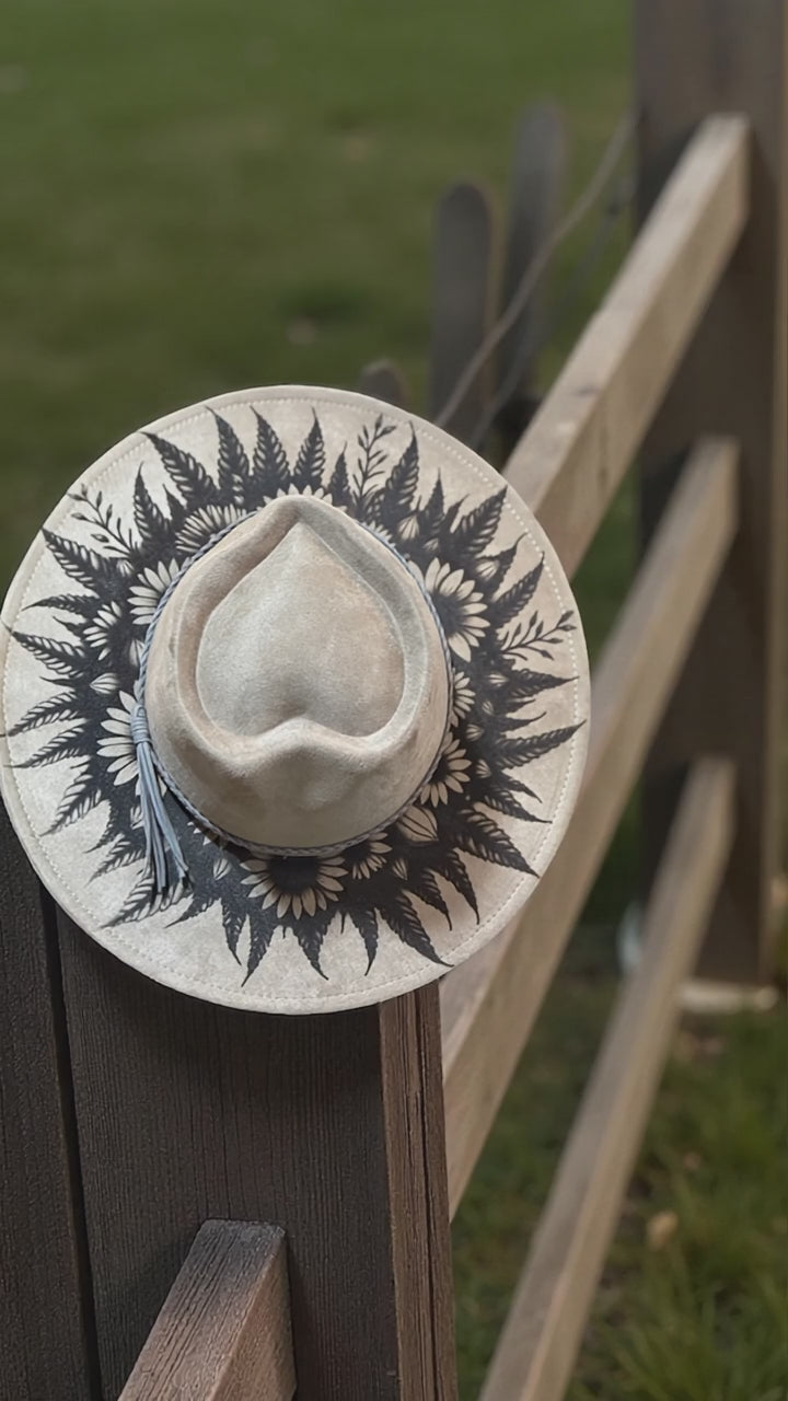 Floral Wide Brim Cowboy/Cowgirl hat laser engraved design WD3167
